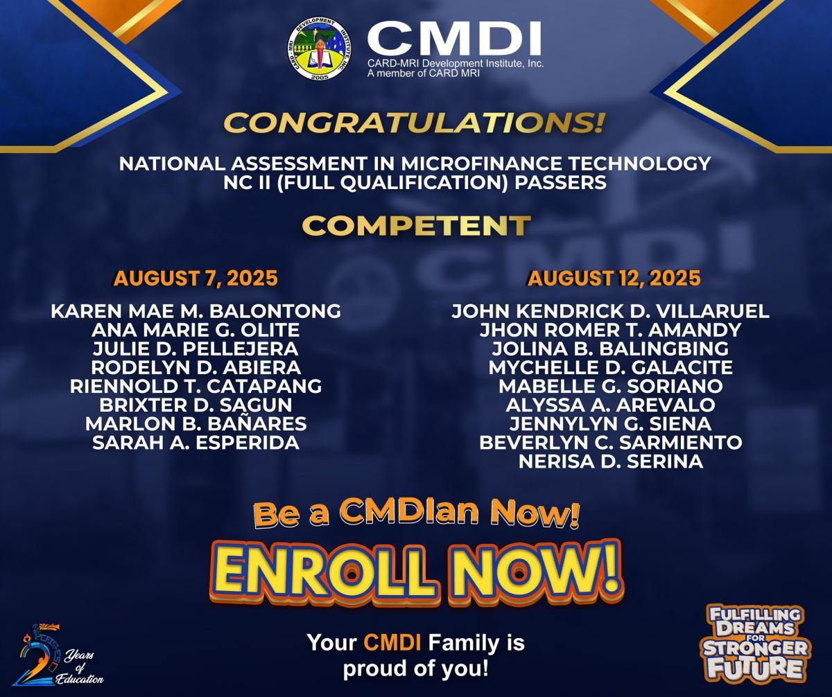 Your CMDI Tagum family is incredibly proud of your hard work, dedication, and achievement.